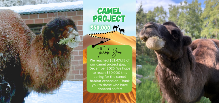 Our current tally (1/8/26) for camel expansion donations is $31,477.78. We hope to reach $50,000 in the spring of 2026. Thank you to everyone who has donated so far!